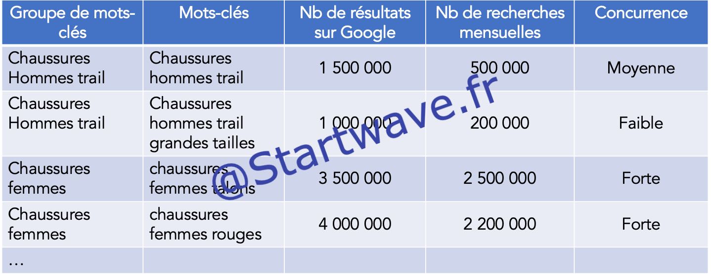 Utilisez un tableau pour classer vos mots-clés